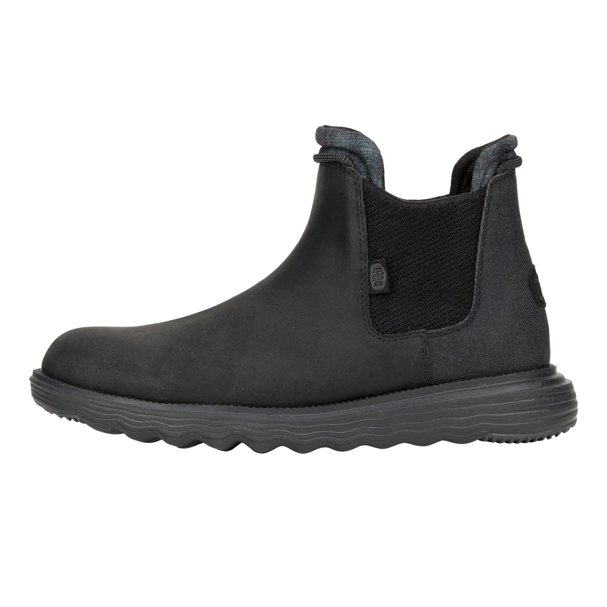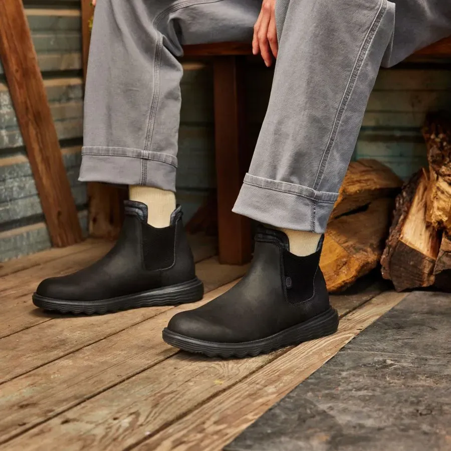 A classy boot for a classy dude. Branson Classic is in it to win it this season with a faux leather water repellant upper, lightweight flex outsole and rubber pods for added traction. Slip into classic HEYDUDE™ comfort and style.