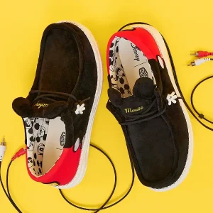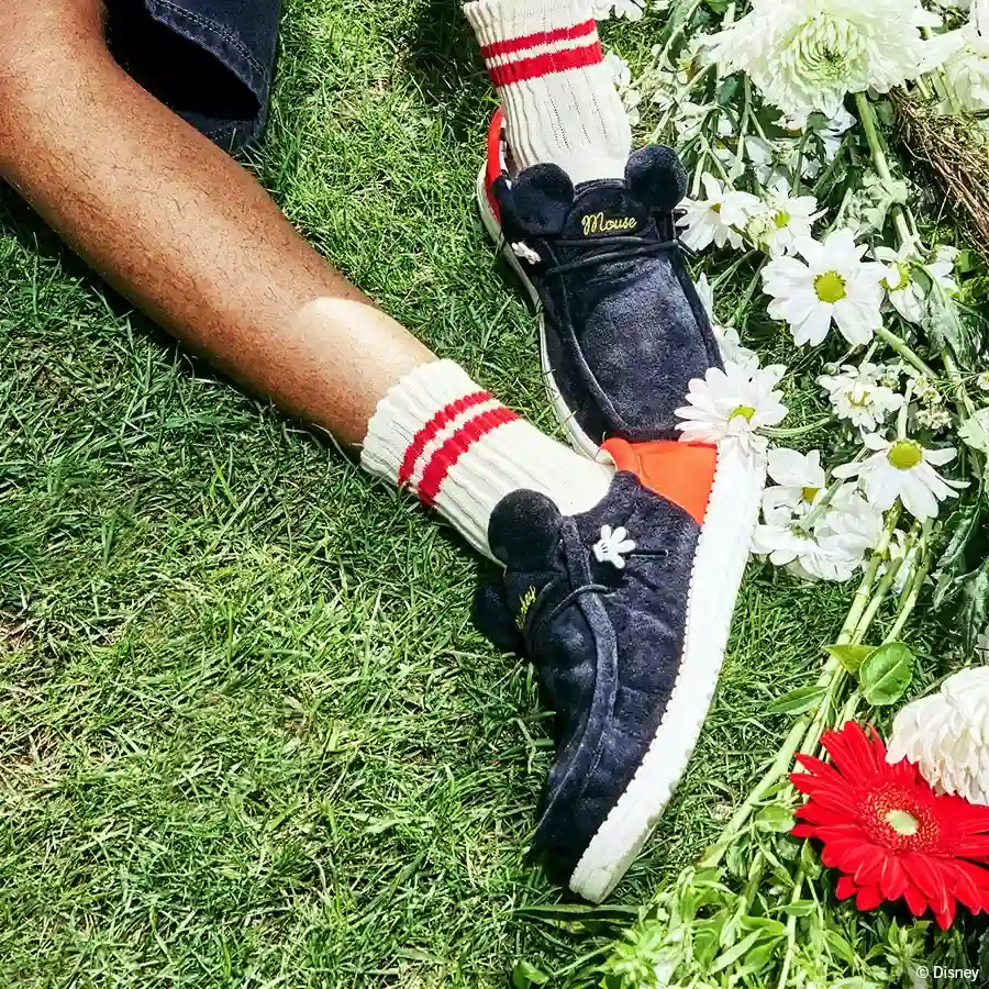 We really gave this collab shoe the white glove treatment. Disney X HEYDUDE Wally Funk Mickey features the character’s iconic coloring, a Mickey hand lace cover, Mickey ears and black and white Mickey head print lining. A truly magical shoe for men and women.