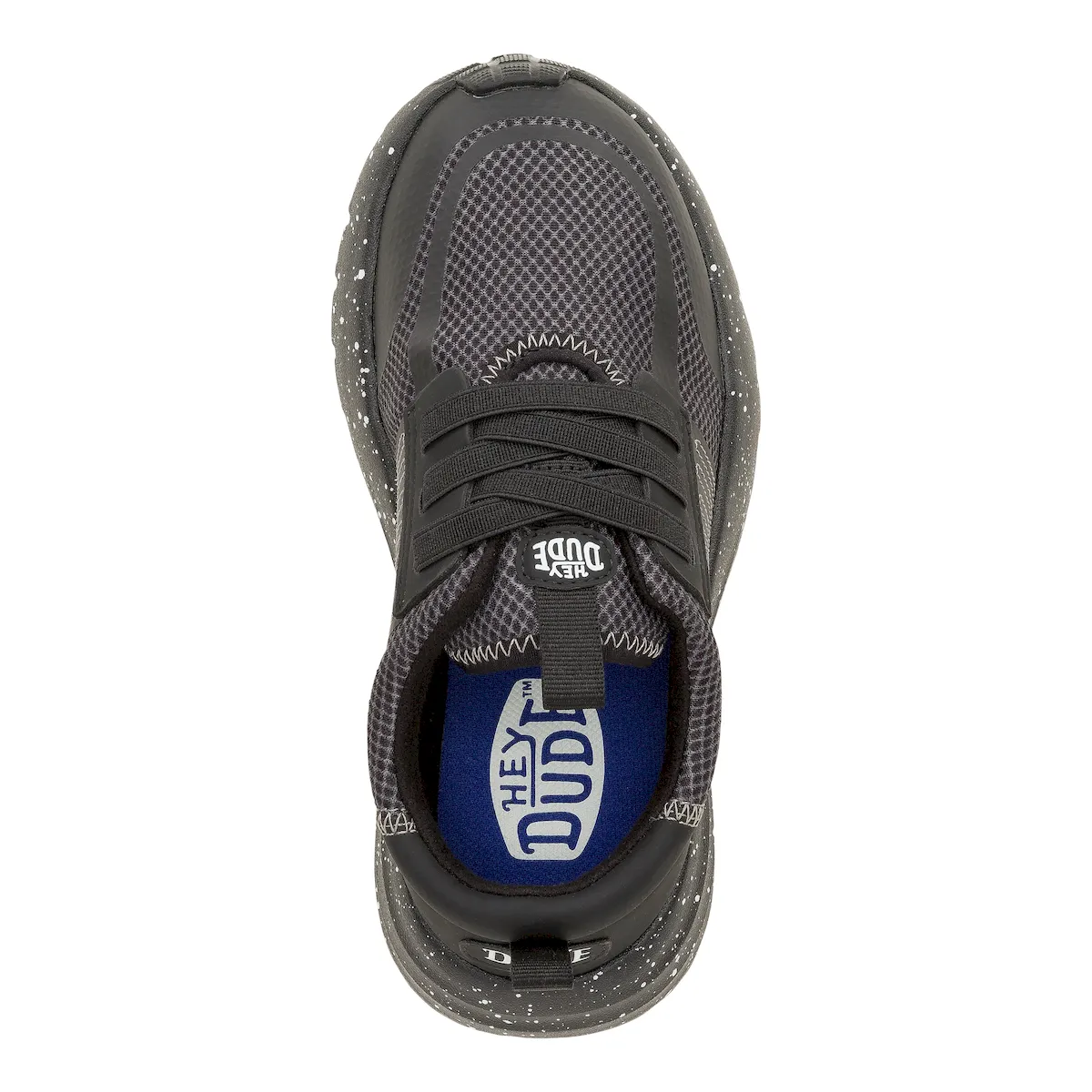 Varsity level kicks for varsity level fits. Extra stretch, extra wide opening and extra cool heel pull tabs make these the easiest kicks your kiddo will ever put on. Take these stretch laces, open mesh upper, and speckled midsole and hit the playground.